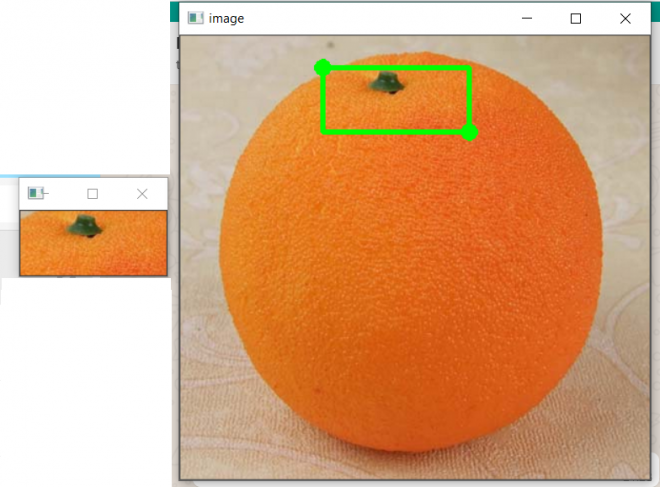Kode diatas, bisa kita kembangkan untuk melakukan croping sehingga butuh variable counter dan point yang bersifat global untuk menyimpan lokasi mouse serta menghitung jumlah click. Setiap click mouse dilakukan akan di append terhadap sebuah variabel bernama point sehingga ketika jumlah click sebanyak 2 kali, maka akan langsung coping area. Oiya kita juga butuh library numpy untuk menyimpan array. Tampilannya sebagai berikut