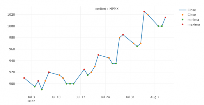 Dengan Mencari Local Maxima dan Minima Harga Saham akan terlihat jelas pergerakan harga saham.